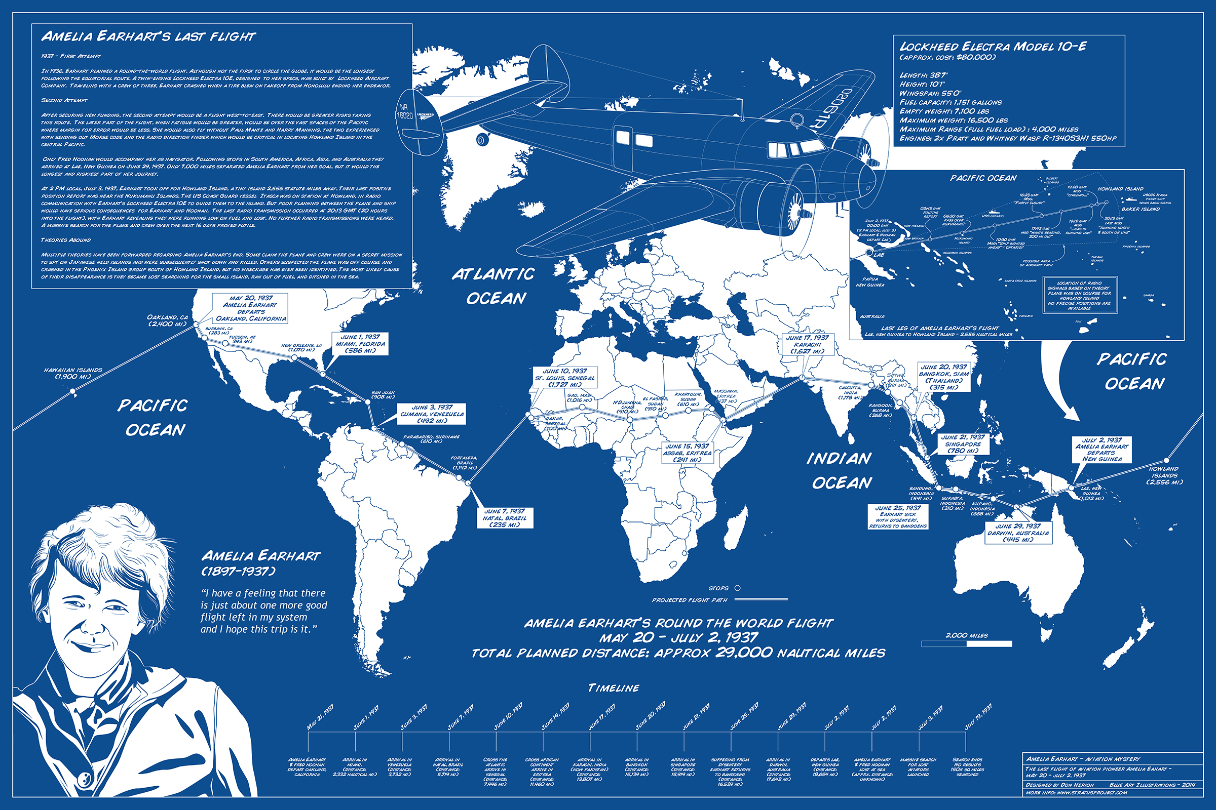 Story of Amelia Earhart's attempt to circumnavigate the globe