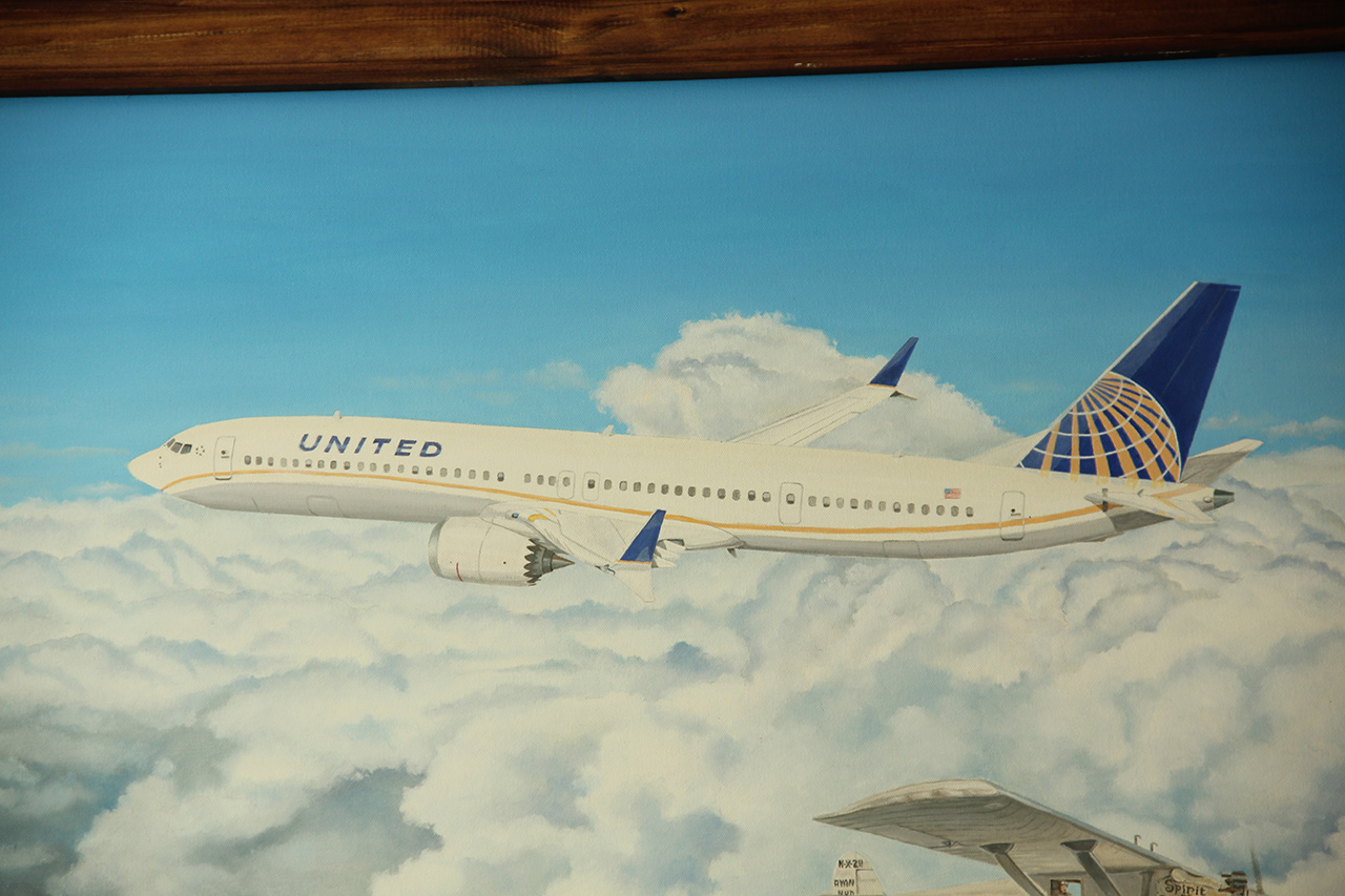 24 x 36 oil painting - UA Boeing 737 passes Spirit of St Louis
