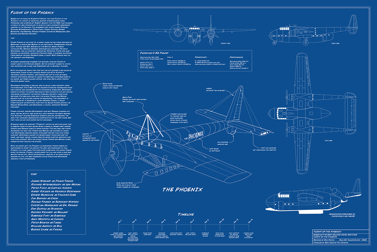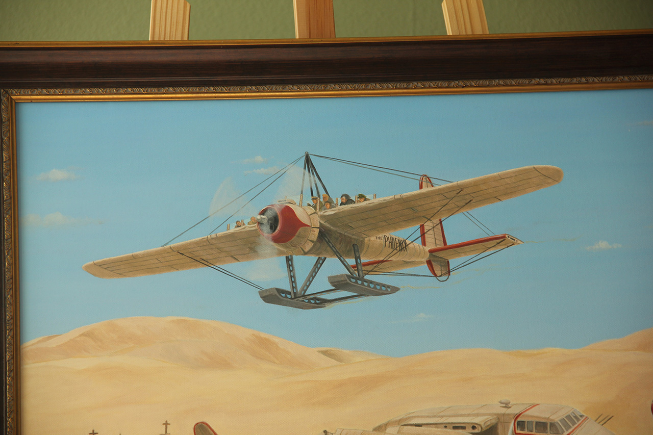 Oil painting based on the classic 1965 film, ‘Flight of the Phoenix’, starring (5 Oscar Winners) James Stewart, Richard Attenborough, Hardy Kruger, Peter Finch, Ernest Borgnine, and George Kennedy.