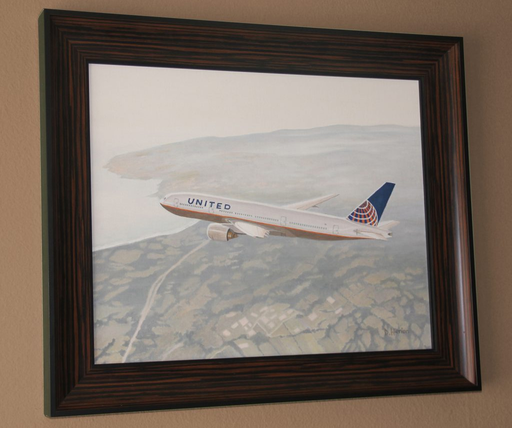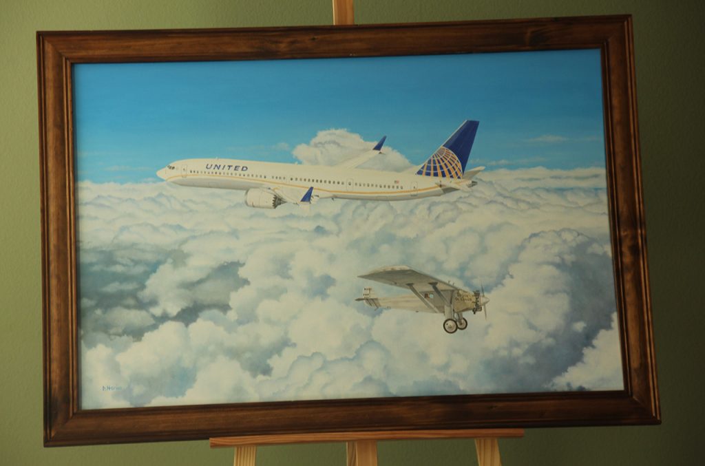 24 x 36 oil painting - UA Boeing 737 passes Spirit of St Louis